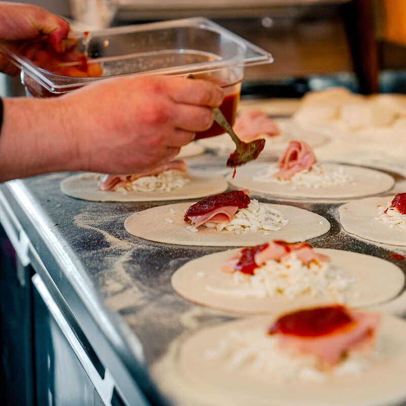 MenuOnze speciale, huisgemaakte panzerotti met unieke vullingen. Alleen verkrijgbaar in groot formaat voor een volle en bevredigende ervaring.